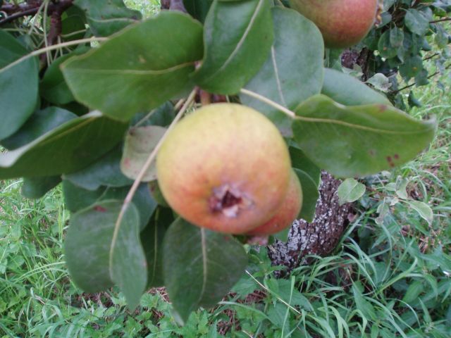De eerste Dirkjesperen zijn nu, 10 juli van het hete voorjaars-jaar 2007, rijp. De kelk lijkt een beetje op die van de Juttepeertjes. De rijpe peer heeft een gezond blosje. De nogal ruw gevormde kelk is vatbaar voor wormsteekaantasting.