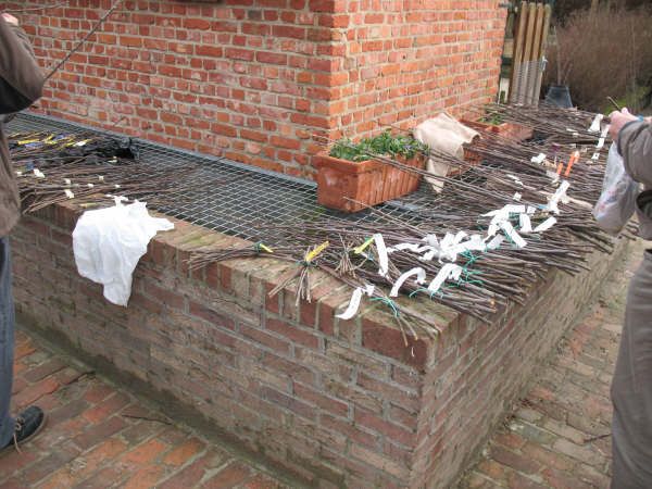 | Er was voor geïnteresseerden een entdemonstratie. Mensen van verschillende oorden brachten enthout samen en wisselden dit uit.. De historische fruitrassenliefhebbers uit Friesland boden ook enthout aan. Je kon er gemakkelijk enthout van wel vijftig bijzondere fruitrassen krijgen. Een prima initiatief, om op deze manier fruitrassen en kennis uit te wisselen! De enthoutbeurs was volgens onze Friezen de moeite van de reis vanuit Friesland zeker waard! Maar, zo vraag je je af, waarom zouden we in ons kikkerlandje eigenlijk geen ruilbeurs op gaan zetten? Friezen, Noord-Hollanders, Noordelijken én zuiderlingen, er is zo veel aan rassen en rasjes in ons land alleen al! Welke pomologische vereniging neemt het initiatief?!