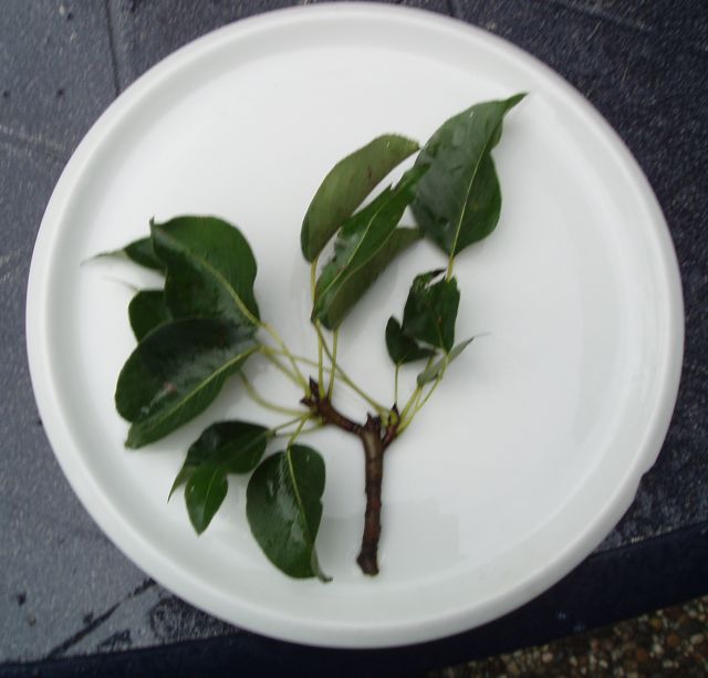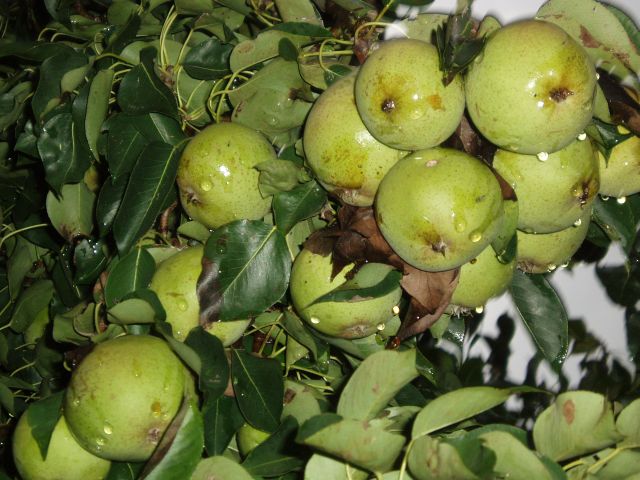 Spikkels over het hele lijf, roest vooral bij de kelk en ook wat meer op het "kratertje" bij de steel Verder: er zijn amper zieke peren aangetroffen. De peer is, volgens de sporadische woorden die over hem geschreven zijn, weinig ziektegevoelig.