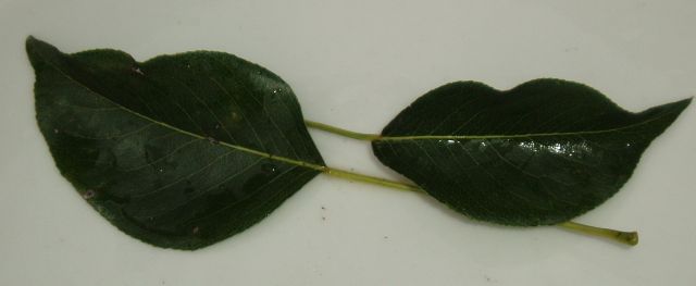 V-vormig blad, beetje kartels, onregelmatig spitsvormig toelopend