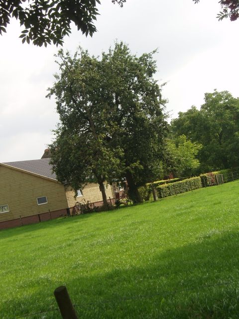 Glurend door het hek zie je toch hoogstamfruitbomen....