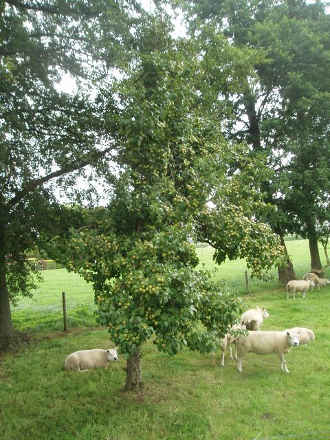 Zou het schaamte zijn over het verval van oude bomen dat je niet naar binnen mag? Nou ik toch aan het woord ben, wil ik graag een hartig woordje richten tot Staatsbosbeheer, de eigenaar van het kasteel. Voor miljoenen belastinggeld is de adellijke ruïne hersteld en zijn de tuinen gerenoveerd. Mag je er verdju niet eens in! Meneer Staatsbosbeer, het zijn ook mìjn belastingcenten. Hoogstammen planten van ook mijn centen, en dan een heg eromheen met verboden toegang? Rechtuit: schande! Gelukkig zijn de mensen in de Achterhoek allervriendelijkst en zijn de boerderijen een parel. De boeren laten ons genieten van de hoogstamschoonheid. Hun uit eigen zak betaalde en onderhouden bomen zijn openbaar zichtbezit, terwijl de op gemeenschapskosten aangeplante bomen bij Slangenburg voor ons afgeschermd worden voor de privacy van een enkele residiërende rustzoeker op het kasteel. Drievoudig verwerpelijk, Staatsbosbeheer! Neem een voorbeeld aan de Achterhoekse boeren, en laat ons genieten van de hoogstamschoonheid! Gelukkig maken zo de boeren goed wat zullie van Staatsbosbeheer niet doen. Zo werd ondanks Staatsbosbeheer dit fruitpad toch een mooi fruitpad. |