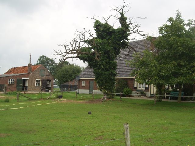 Hier beginnen coniferen hoogstammen te verdrijven. Coniferen op boerenerven, er zou een plant-welstandscommissie moeten komen die het zou verbieden!