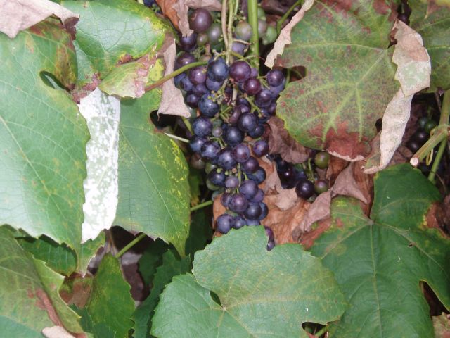Geen mooi begin: een niet geleide, onverzorgde druivenstruik, met al rijpe vruchten
