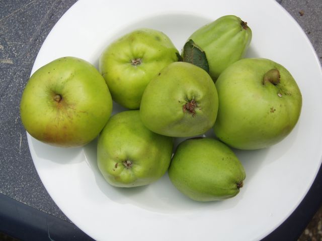 | Ook op een ander adres kreeg ik Kafappels. Maar na overleg met een collega-pomoloog ben ik tot de conclusie gekomen dat dat Early Victoria's betrof. Over de benaming "Kafappel" doen vele misverstanden de ronde. De hieronder afgebeelde conisch gevormde appels lijken overeen te komen met die van de beschrijving van Kiès. Voor mij zijn dit dus de echte "Zure" Kafappels, net zoals de 75-plus jarige eigenaresse ze noemt.