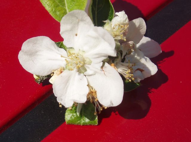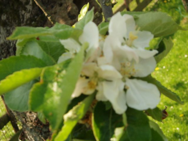 | Dit zijn foto's van de boom waarvan de ex-fruithovenier-eigenaar stellig zegt: dit is een echte Kafappel. Ooit werd hij door een pomoloog gedetermineerd als Lunterse Present. Wellicht dat de details van de bloesem alsnog aanleiding geven tot een andere determinatie.
