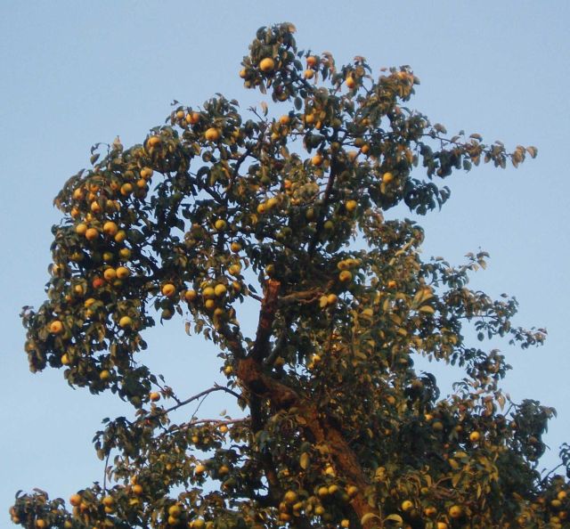 Een weldragende Knolpeer (althans de top ervan) De Knolpeer lijkt op de Bergamotte Heitrig