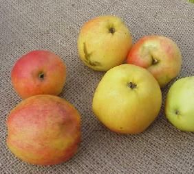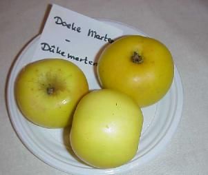 Ten eerste is er de Doeke Martens-appel, een beetje het boegbeeld van onze Stichting. De platte, gele appel met een vettige schil en vrij zacht, zoetzuur vruchtvlees stond al beschreven in "Pomologia" van J.H. Knoop uit 1758. De appel is waarschijnlijk genoemd naar Doeke Martena (1530-1605), een afstammeling van een oud geslacht, waarvan het inmiddels gerestaureerde stamhuis, Martenastate in het friese Cornjum, ten noorden van Leeuwarden, staat. Na een moeilijke jeugd waarin hij zijn beide ouders verliest, maakt hij, geholpen door zijn goede afkomst, snel carriére en trad toe tot de de gedeputeerde staten. Hij streed zijn leven lang voor vrijheid van godsdienst, en de onafhankelijkheid van Friesland, en slaagde hierin, gesteund door Willem van Oranje. De appel kwam jarenlang niet voor in kwekerscatalogi en fruitbeschrijvingen, maar na een zoektocht bleken er toch nog twee bomen van dit ras in Goutum, vlak onder Leeuwarden te staan. De eigenaar vertelde dat hij en twee ooms zich veel bezighielden met het vermeerderden van oude fruitrassen, en de soort zo in eigendom hadden gekregen.