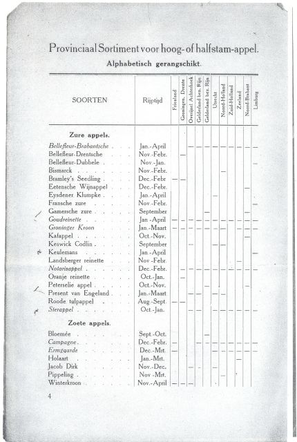 | Veel van de genoemde appelrassen zijn inmiddels voor het nageslacht veilig gesteld. Denk aan de POM in Noord-Holland, de NPV in vooral het noorden en oosten, de Stichting Fruit yn Fryslân, het Zeeuws Frutteeltmuseum, de provinciale Landschappen, Het Fruitmuseum in Doesburg, de Agrarische NatuurVereniging Altena-Biesbosch, Het Gelders Steunpunt Hoogstamfruit. Her en der wordt het erfgoed bewaard en in voor het nageslacht behouden. In Wageningen is er een centrum voor genetische bronnen dat krachtens een internationaal verdrag de appelgenenrijkdom beheert. Van de genoemde appelrassen is men vooral nog op zoek naar de Peterselieappel. In Duitsland schijnt er genetisch materiaal te zijn, maar in Nederland is hij nog niet teruggevonden, althans niet eenduidig geïdentificeerd, voorzover mij bekend is. Genoeg gepraat, hier volgt het Provinciaal Sortiment. Voor wie een collectieboomgaard wil aanleggen, geeft dit in ieder geval enige richting wat er zo uit en naast de de lijst van Lijsten en Beeftink uit 1942 in de collectie zou moeten zitten.