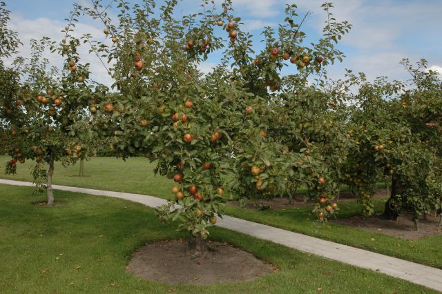 Ook sierappelbomen in de Abdijtuin In een kloostertuin hoort men natuurlijk aandacht te hebben voor de kweekproducten van geestelijken. Zoals Pater van der Drift.