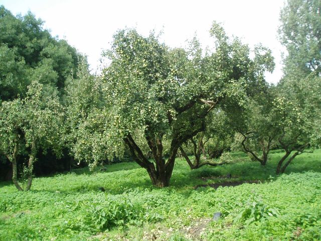 | Het waren appelbomen die de naam halfstam eigenlijk niet verdienen, omdat ze vlak boven de grond al splitsen. Hooguit een halve meter boven het maaiveld splitst zich de boom. Een struikvorm splitst zich nog hoger als deze bomen.