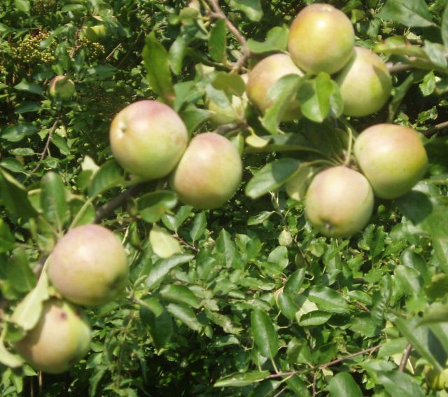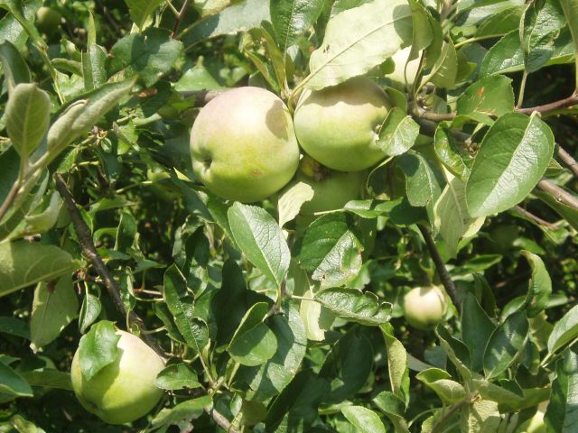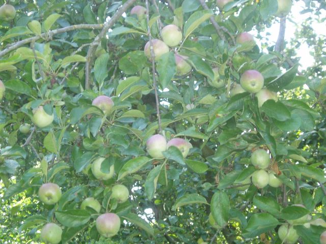![]() Close up van de bovenstaande boom. De waas (het glimmen) op de appels is geen kwestie van slechte fotografie, maar werkelijkheid.