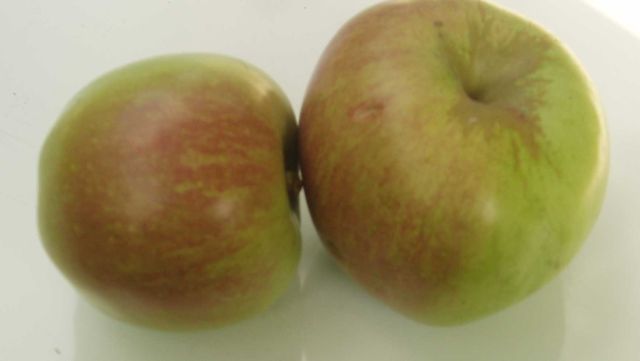 ![]() De (Rode) Wijnappel. Opvallend is dat de boom vooral in de breedte groeit. Dit spoort met de beschrijving uit de schaarse literatuur. De boom staat enigszins in de schaduw van andere bomen; dit komt de ontplooiing van de boom duidelijk niet ten goede.