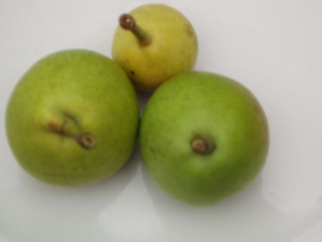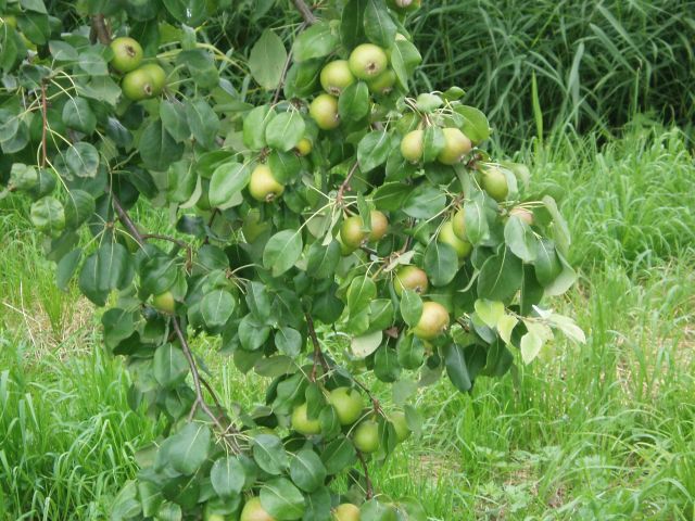 | De Dirkjesperen zijn vroege zomerpeertjes, normaliter in augustus rijp, maar dit jaar met zijn hete april maakt dat er nu al diverse peertjes rijp zijn.