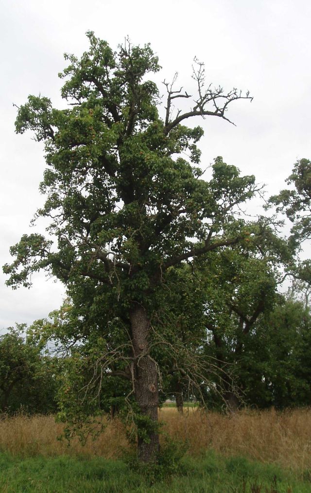 | Zo bevat dit artikel het verslag van de vondst van twee stokoude perenbomen in rivierenland, waarvan de eigenaar stellig vertelde dat het de Haantjespeer en de Discuspeer betrof. Aangezien de eigenaar eerder al juiste naam voor twee andere op zijn erf aanwezige stokoude bomen had gegeven (Dubbele Flip ofwel Beurré de Mérode, Nouveau Poiteau, Knolpeer, Ossekop ) gebruik ik de door hem gegeven namen voor de hiernavolgende speurtocht. Deze namen had mijn oude perenvriend weer gehad van diens vader en die weer… Die speurtocht zal moeten volgen, omdat er althans op Internet en daarop raadpleegbare pomologische literatuur geen Discuspeer te vinden is en slechts één ras met de naam Haantjespeer die ook als Westfries te boek staat en alleen boven het Noordzeekanaal verondersteld wordt voor te komen. De Haantjespeer uit Rivierenland Er zal geen mens zijn die de leeftijd bereikt die onderstaande boom heeft. Ons past dus bescheidenheid. We zijn slechts jonkies in vergelijking met wat u hieronder ziet…. Ik nodig u uit zijn bast nader te bekijken. Een enkele foto biedt daartoe de mogelijkheid.