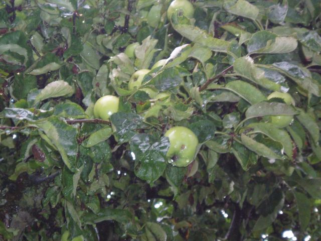 Gamerse Zure in de stromende regen aan de boom. Het zijn stevige takken die de weelde dragen……………..