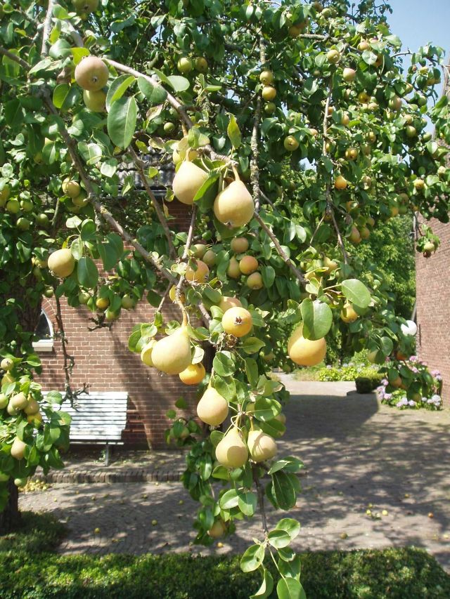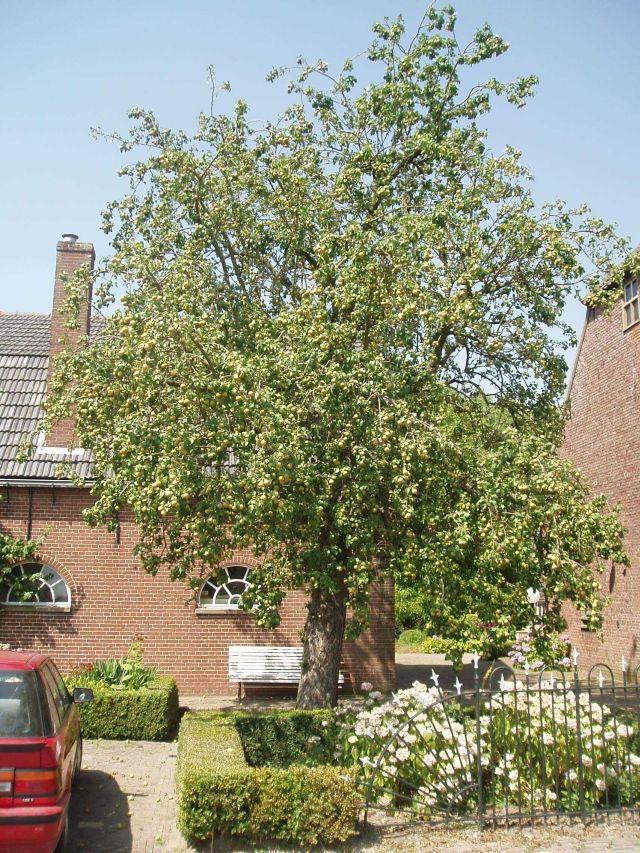 | Er is op Internet niets over hem te vinden. Behalve dan dat hij bestaat (hij staat op de inventarisatielijst van Pomologische Vereniging Noord-Holland). En dat hij bij één kweker te koop is. Ook de pomologische literatuur bevat, zo verzekerde mij een autoriteit op perengebied, niet veel informatie over de Janbaas. Daarom kan dit artikel niet veel meer zijn dan een eerste kennismaking met een bijzondere peer. Na de zomer zal nog een speurtocht naar geschiedenis en oorsprong van de Janbaas plaatsvinden. Op deze stek zal, indien er relevante informatie boven komt, van die speurtocht verslag gedaan worden. De Janbaas – algemene informatie over voorkomen De Janbaas is een oud hoogstamras. Hij kwam in ieder geval voor in het rivierengebied, maar ook in Noord-Holland is hij bekend. Van de nestor van de Pomologische Vereniging Noord-Holland, Henk Houtman, kwam de informatie dat hij enthout nam van een Suikerperenboom waaraan nog één tak van een Janbaas zat. Deze Janbaastak vormde indertijd in Noord-Holland naar hij vreesde het laatste overblijfsel van de Janbaas. Overigens, uit inventarisatie door de Pomologische Vereniging Noord-Holland is gebleken dat er in de Beemsterdorpen in totaal 5 Janbaas-bomen staan. De leeftijd hiervan is mij onbekend. In het rivierengebied zijn in ieder geval nog wel enkele zeer oude Janbazen te vinden. Eigenschappen van de Janbaas De Janbaas is een klein peertje met een typische smaak. Wie 40 jaar lang geen Janbaas heeft gegeten, krijgt bij het proeven van een Janbaas een aha- beleving. De smaak laat zich omschrijven als zoet, maar met een fris toefje en een aangenaam, specifiek niet-overheersend aroma. Het meest opvallend aan de Janbaas is zijn vroege rijptijd. Op circa 18 juli is een redelijk aantal peren rijp. Binnen enkele dagen is een rijpe peer melig. Maar zolang hij niet melig is, is het een aangenaam zoet peertje. Het is geen echt sappige peer, maar overdreven droog is de peer, mits niet melig, evenmin. Oudere inwoners van dorpen in het rivierengebied dragen aangename herinneringen met zich mee aan de Janbaas. Hij markeerde vaak het echte begin van de (bouwvak- of school-) vakantieperiode. Beelden van de Janbaas In het rivierengebied trof ik in Wijk en Aalburg voor een voormalige boerderij onderstaande volgroeide Janbaas aan.