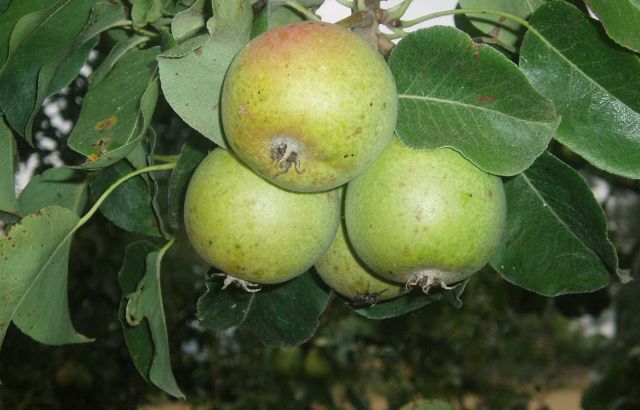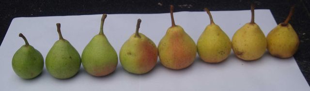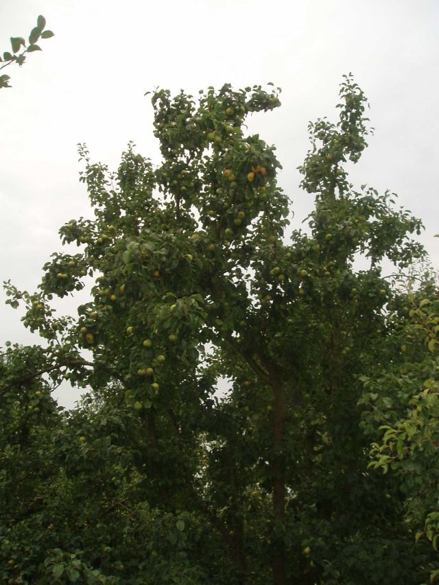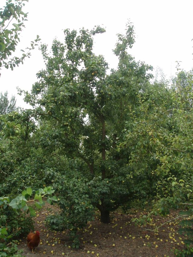 De peren vallen gemakkelijk al vroeg rijp af. Bijgaande foto van 29 juli 2006 spreekt wat dat betreft boekdelen. Tot vreugde van de New Hampshire kip.