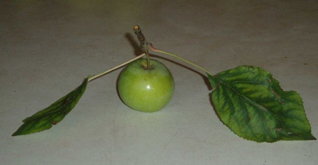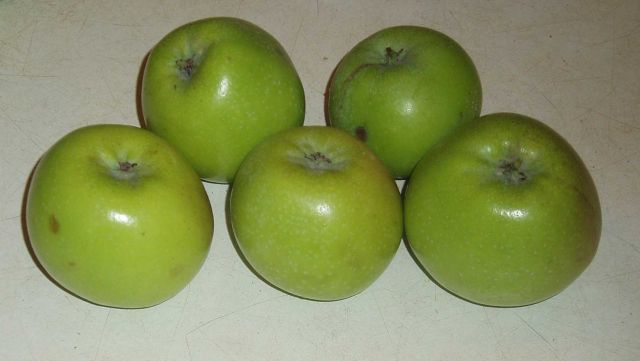 Een enkele appel van de zuidkant van de boom vertoont aan de zonzijde een blosje. Zonnebrand door standplaats op zeeklei-bodem op een windluwe plek? Alle foto’s: Bas van Andel |