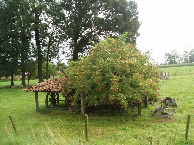 Hier beginnen coniferen hoogstammen te verdrijven. Coniferen op boerenerven, er zou een plant-welstandscommissie moeten komen die het zou verbieden!
