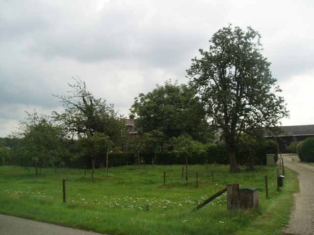Glurend door het hek zie je toch hoogstamfruitbomen....
