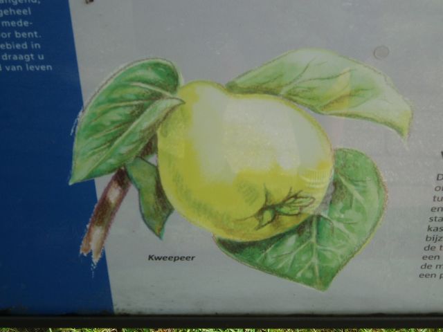 Buiten werd de bezoeker blijgemaakt met de boodschap dat er prachtige kweeën in de tuin staan....