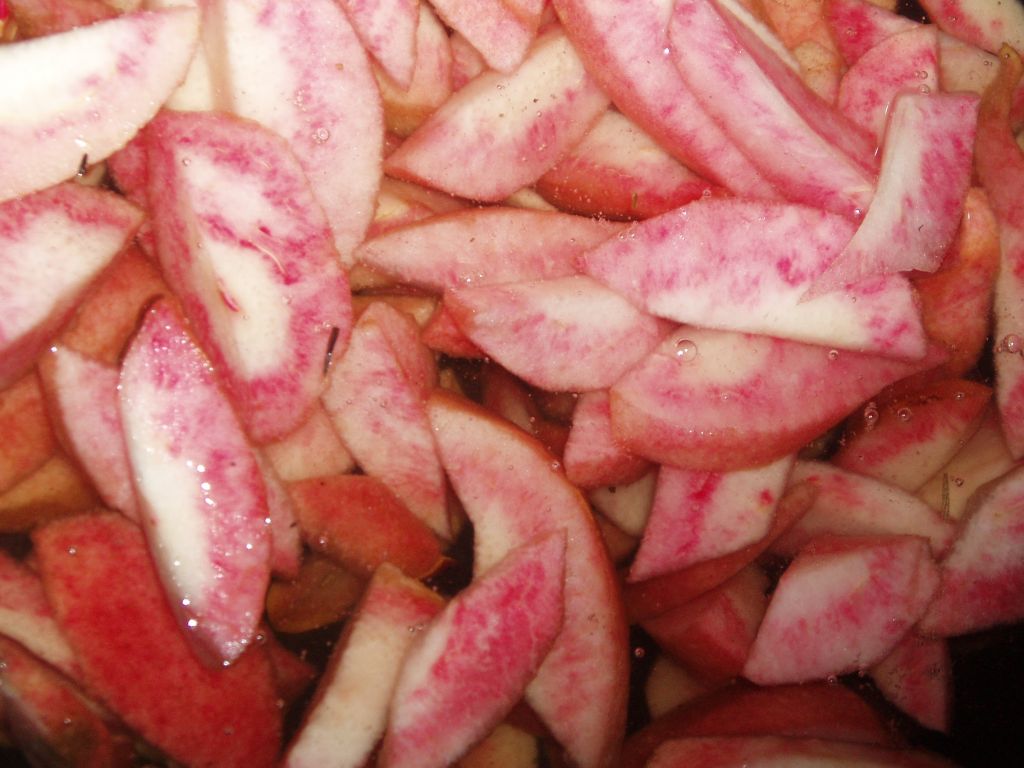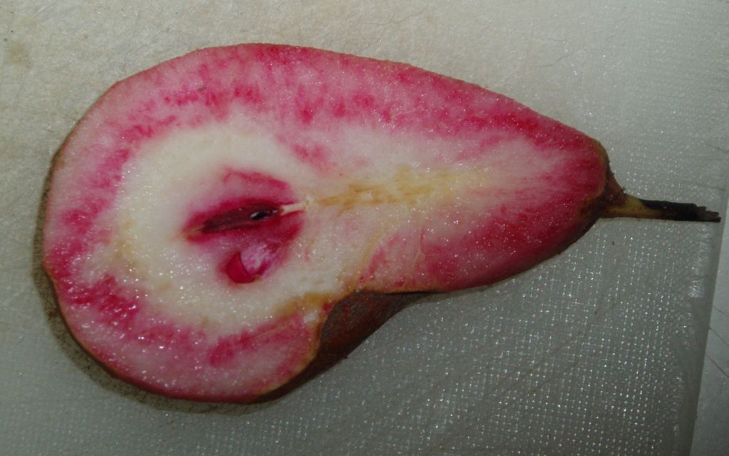 | Mis, geachte pomologische voorvaderen.... Het is nu 4 januari 2015. In mijn keuken staat een pan vol Bloedperen. En in mijn schuur staat een halve kist, mist slechts incidenteel een rotte erin. Ja, uiteraard zie je wel es een rimpeltje in de schil. Maar als thuisbewaarder ben je dat gewend. Hoppa, bijgaand een paar foto’s om de schoonheid van de Bloedpeer en van een pan Bloedperen nog maar eens te tonen.