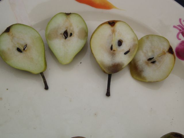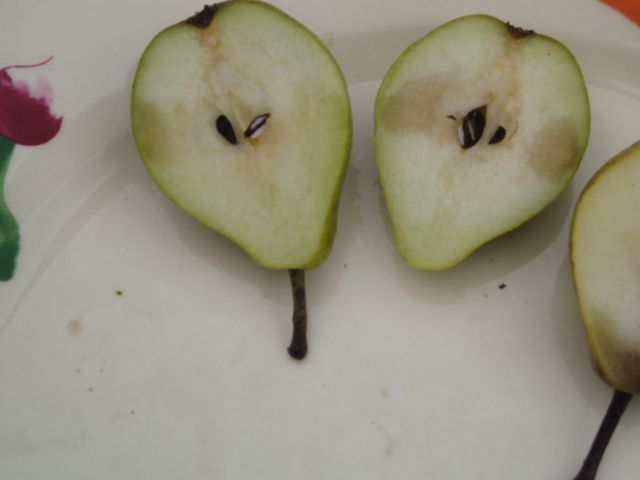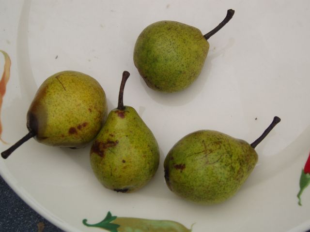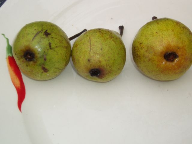 | Nu, terwijl ik er toevallig weer langsreed, zag ik van onder de sneeuw vandaan gekomen nog legio peertjes liggen. Uiteraard werd het rempedaal vlot ingedrukt. De laatste vraag van vorig jaar, tevens de eerste vraag van dit jaar is dus: hoe heet dit peertje. Het oogt als een zaailing, maar de boom is veredeld. Wie goed kijkt ziet dat helemaal onderaan de stam echt "wilde"takken uitlopen, terwijl hogerop "echte" loten uitlopen. De eigenaresse op leeftijd wist nog te vertellen dat haar ouders vroeger de peertjes weckten. Foto's van de peertjes zijn inmiddels naar de echte perenkenners, maar jullie mogen uiteraard mee-determineren. Reacties met de mogelijke naam van deze peertjes van een oeroude boom naar pomobas@wxs.nl