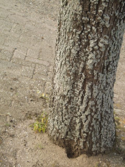 De stam van de boom: oud en te lijden gehad van de verharding rondom de boom |
