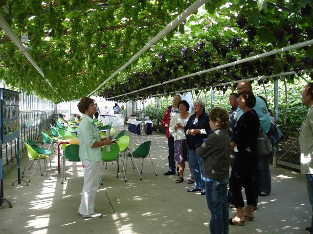 | Na het grote succes van de druivenproeverij tijdens de Themadag op 25 juli jl. wordt op zaterdag 15 en zondag 16 augustus en op 22 en 23 augustus wederom een unieke kans geboden om (tafel)druiven te proeven, die u nog nooit geproefd hebt. Naast de bekende druivensoorten als Frankenthaler, Black Alicante, Golden Champion en Muscaat van Alexandrië zijn dit weekeinde ruim dertig soorten te proeven. Deze soorten groeien in de unieke collectie van Themapark De Westlandse Druif in een speciale assortimentskas van de druiventuin. In het totaal zijn er nu 30 rassen geschikt voor consumptie en staan er 45 rassen in de assortimentskas. In deze druivenserre is de grootste collectie druivenrassen in de wereld te bewonderen. Tijdens de themadag geldt een speciale toegangsprijs van 5 euro per persoon, (kinderen slechts € 2,50). Voor dat geld krijgt u een rondleiding met bezichtiging van de film en het museum en u krijgt een leeg ‘druivenschuitje’. Met dat ‘schuitje’ bezoekt u de corridor waar u drie ‘tisjes’ druiven van de aanwezige soorten mag uitzoeken voor het proeven. Een tisje druiven is ongeveer vier á vijf korrels. Bijzondere soorten tijdens deze themadagen zijn bijvoorbeeld Pastoor Verburch, de Regent en de Ribier. Of u kiest voor een wijndruif die veel sap bevat. Vanzelfsprekend is er natuurlijk ook de gelegenheid om druiven te kopen. Tevens kunt u een verrassingstas kopen die allemaal leuke producten uit de winkel bevat ter waarde van 15 euro. De verrassingstas is te koop voor tien euro. Het restaurant van Themapark De Westlandse Druif heeft deze themadag een keur aan heerlijke gerechten op het menu staan. Van een kop koffie met druivencake tot een high-tea of lunch. Alle gerechten staan in het teken van Westlandse druiven. Laat u verrassen door bijzondere smaakcombinaties en -sensaties. Het restaurant is dagelijks geopend van 10.00 tot 17.00 uur. De Themadag start om 10.00 uur en duurt tot 17.00 uur. De rondleidingen worden doorlopend gegeven. De laatste rondleiding is om 15.30 uur. Het Themapark is gelegen aan de Vlotlaan 535 te Monster. Parkeren is gratis. Aanwezig zijn voorzieningen voor minder-validen en het gehele park is rolstoeltoegankelijk.