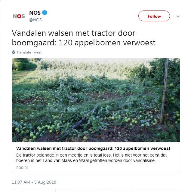 "Godsallemachtig. Er is in dit land ook niks meer veilig of heilig... Oom agent, pak ze en ... tja welke straf..... afranselinkje met een paar takken? Van een per ongeluk uitgelopen "wilde"appelboom? Met lekkere doornachtige uitstulpsels aan de tak...."