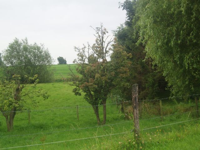 Hoogstamappelbomen in het talud Even later zien we evenwel de eerste perenboom. Deze eerste perenboom lijkt een Clapp’s Favourite. Er hangen enkele rode peren me toe te lachen vanuit vrij kale en vrij schaars aanwezige takken. De perenboom lijkt zijn beste tijd te hebben gehad.