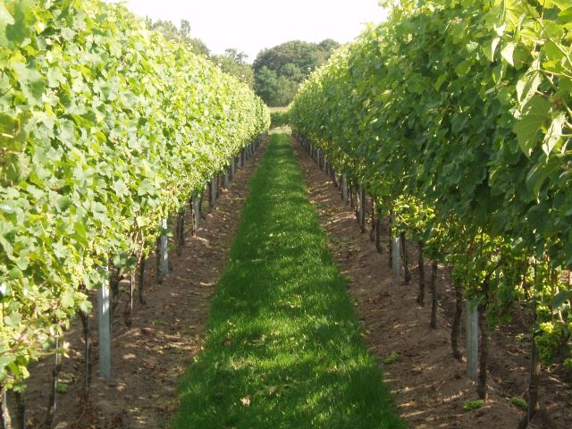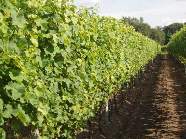 Net als in Frankrijk: volop beschenen rijen met druivenstokken