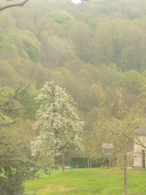 24 De rose bloesem van de Jonagold Teuven ligt in het dal van de Gulp. Het hoogte verschil met de andere Voer-dorpen is te merken aan de hier nog bloeiende peren. De foto’s van het internet programma ‘Google Earth’ zijn ca een week vroeger in het jaar genomen. Aan u de vraag of u deze bomen kan terug vinden. |