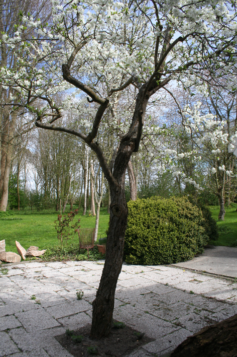 | De complimenten waren voor de snoeiers. Het resultaat van het werk waarover de "cliënt" zo tevreden is mag er zijn. Graag laten we jullie meegenieten van de nieuwe pruimenbloesempracht, ontstaan na en door het werk van onze snoeibrigade. Ook namens de redactie: chapeau, snoeibrigade! Hierbij de e-mail: Goedendag, Hierbij het prachtige resultaat van mijn misschien wel 80 jarige pruimenboompje. Twee jaar geleden werd het boompje na zeker 35 jaar gesnoeid door jullie medewerkers. Vorig jaar was de oogst een tiental pruimen, maar dit jaar is de boom van top tot teen getooid met bloesem. Voor de snoei was altijd de helft helemaal zonder bloesem. Een wonder. Gertjan Evenhuis