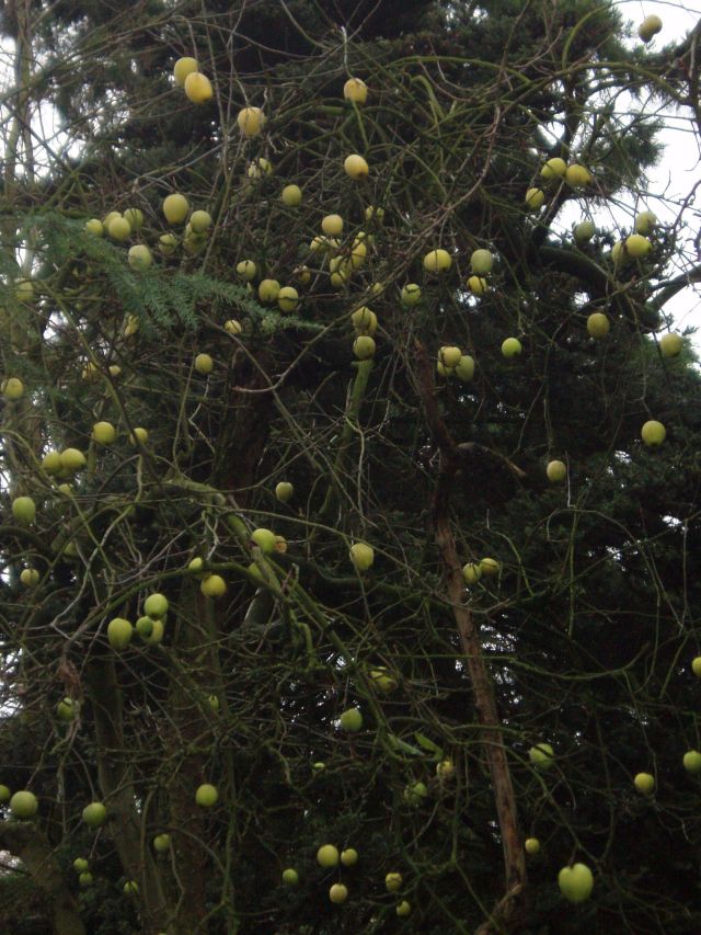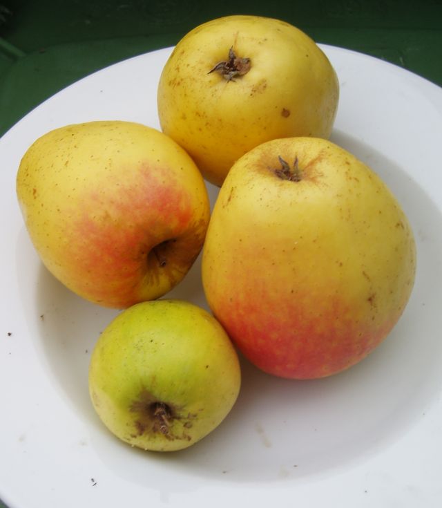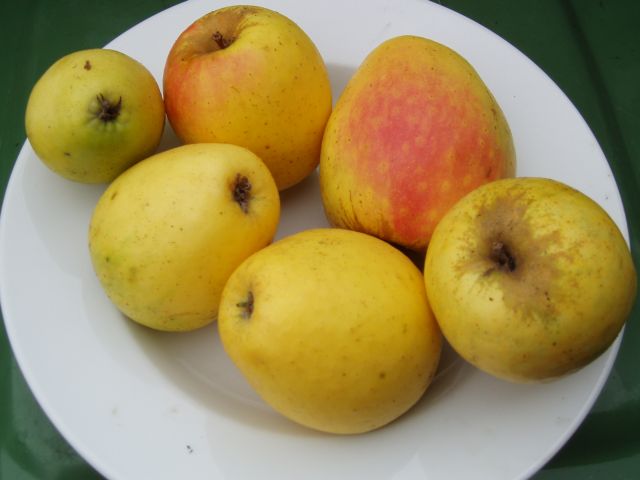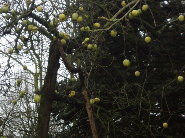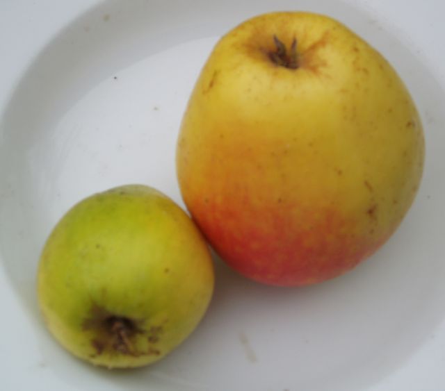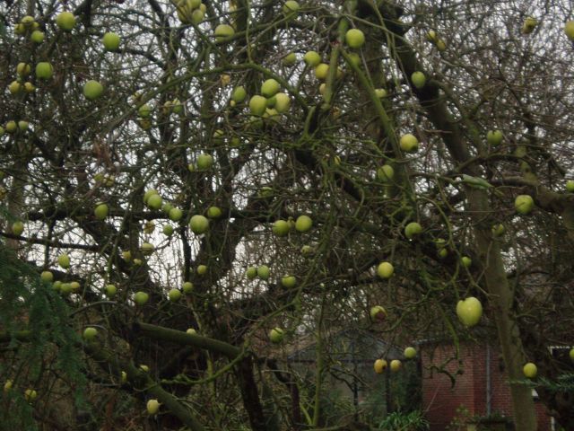 Foto's: Bas van Andel Het zijn Presenten van Engeland!Uw redactie kondigde aan dat zij belet zou vragen bij de eigenaren van de volbeladen appelboom. Het was een allervriendelijkste ontvangst, met een goed bekske koffie en een gezellig praatje. De eigenaren zijn trots op hun boom. En terecht!. Het is een mooie Present van Engeland. Uw redactie kreeg een kistje al maanden geleden geplukte appels mee. Wat er nog aan de boom hangt, dat zijn de kleintjes. De mooiste, eerder geplukte appels kreeg uw redactie mee voor de foto. Opmerkelijk is dat slechts enkele appels een rode blos hebben. Ook valt op dat ze erg ongelijk van grootte zijn. Maar prachtig, dat zijn ze allemaal! Eigenaar en eigenaresse, bedankt voor de allervriendelijkste ontvangst en uw goede gaven!