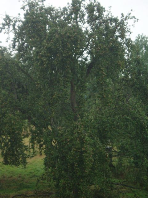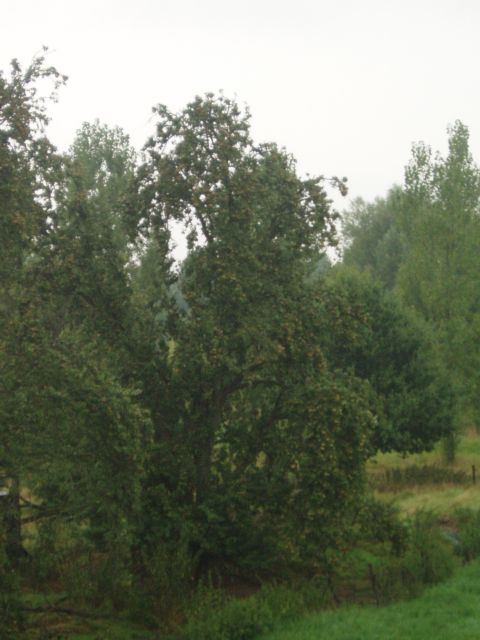 | Ik zag het toevallig, dit boomgaardje met reuzen van perenbomen in de uiterwaarden van de Maas, ergens bij Lith, het dorp aan de rivier uit een klassiek boek met die titel. Mooi, dat zo'n boomgaard het overleefd heeft. Jammer en triest, dat zoiets eigenlijk alleen in voor moderne landbouw ongeschikte gronden heeft kunnen overleven.