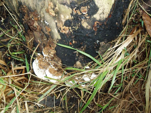 Paddestoelen aan voet van nog levende Williams Duchess van zeker 100 jaar oud