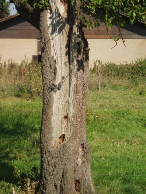 Toch altijd weer jammer, een oude hoogstam die ten prooi valt aan vogels die er gaten in maken. Ook al vervullen deze bomen nog steeds een functie in ons ecosysteem, jammer is het, zeker als het voorkomen had kunnen worden door goed onderhoud.