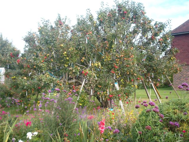 | Soms krijg je een mooie foto toegemaild. Zoals dit keer van een appelboom met ontelbaar veel rassen erin geënt. Deze boom is te mooi om jullie er niet van mee te laten genieten!