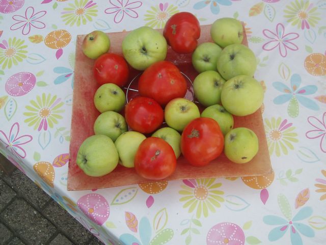 appels over. Die legde ze tussen de rode vleestomaten. Een mooie combinatie: nog