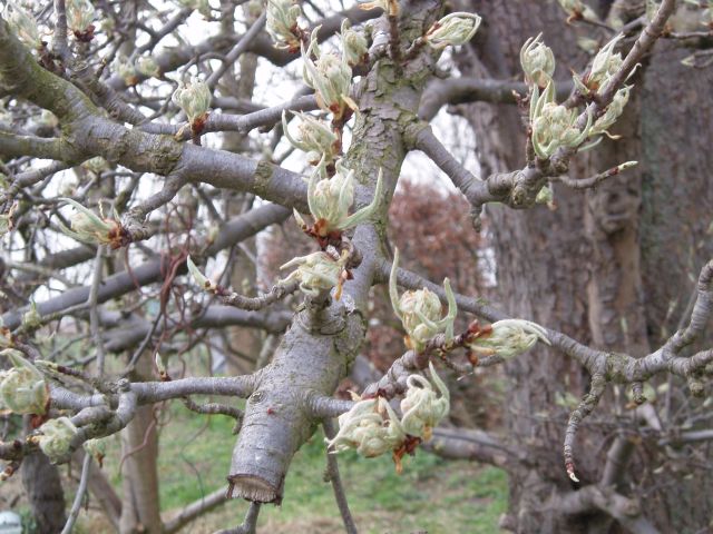 | Okay, jullie denken dat hier plant-en dierkundelessen door elkaar gehaald zijn. Nou nee, in lyrische teksten mag je beeldspraak gebruiken die biologie-technisch niet helemaal klopt, maar wel duidelijk maakt wat de bedoeling is. We zien hier een eeuwenoude Knolpeer, met knoppen die op uitbarsten staan. Zwanger van van nieuwe vruchten. Mooi al . En nou nog wachten op het moment dat de bloesem opengaat...