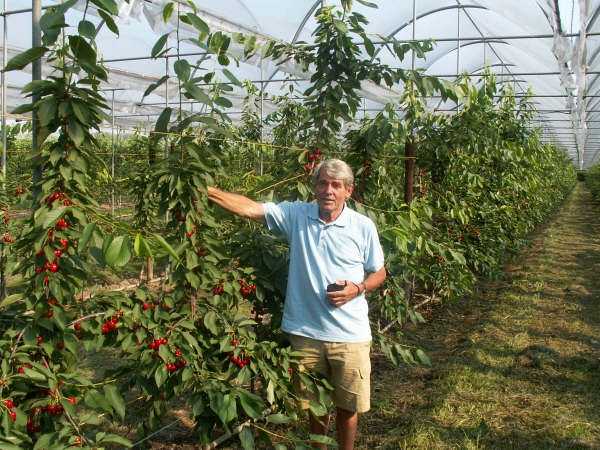Goed is op de foto's te zien dat ook de cliënten die gebonden zijn aan rolstoel hier bij de vruchten kunnen. Zelfs de uitspraak dat vanuit (een verrijdbaar) bed het fruit geproefd zou kunnen worden is niet tegen te spreken. Maar er zijn meer voordelen aan dit fruithagensysteem. Het vergt weinig ruimte. Het zou langs de randen van vollegrondstuinbouwbedrijven toegepast kunnen worden en ook langs bedrijfsgebouwen op veehouderijen. Zelfs in een kas zou men dit systeem kunnen toepassen; langzame groeiers als kersenbomen op Gisela 3-onderstam kunnen in een kas geteeld worden. Zie onderstaande foto.